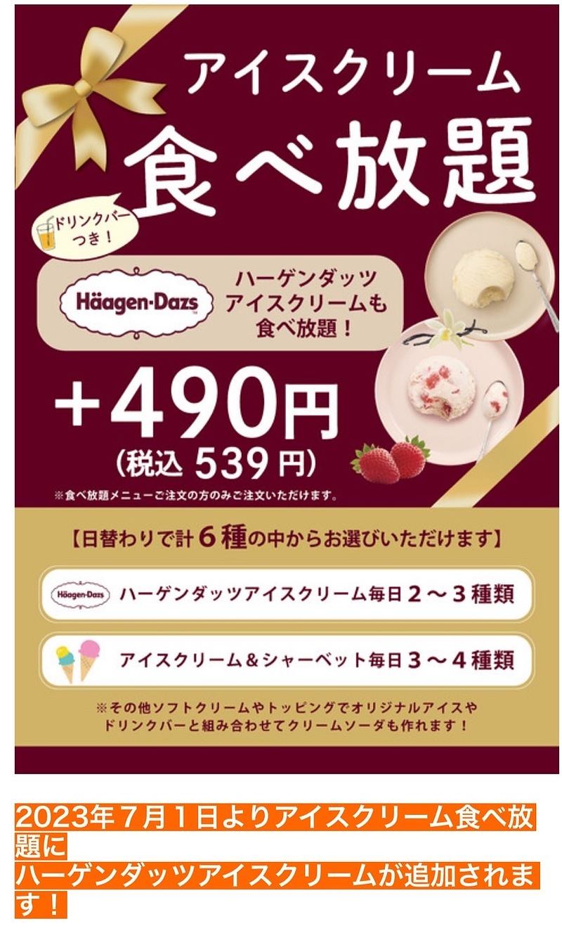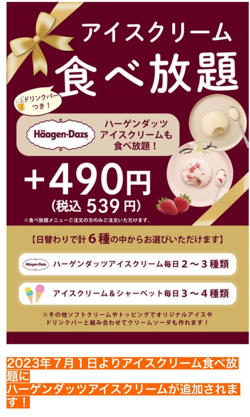 デザートは別料金ですが、アイスクリーム食べ放題もあり