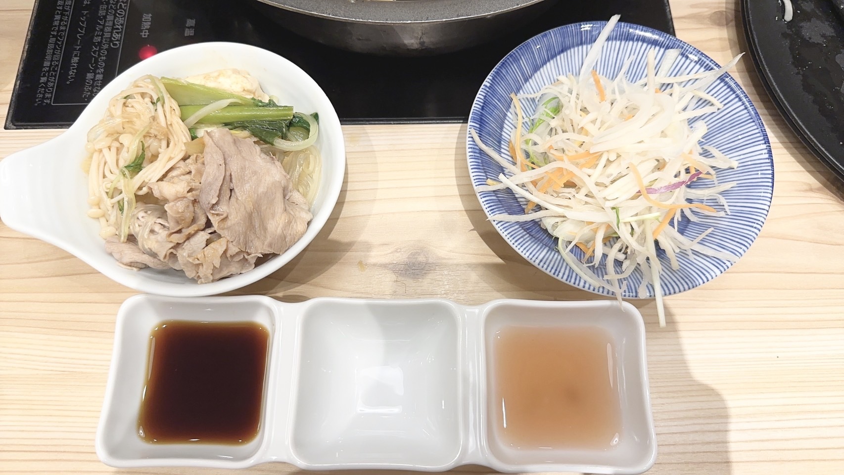 たれもポン酢、ゴマ、梅などがあり、薬味も何種類か用意されていて