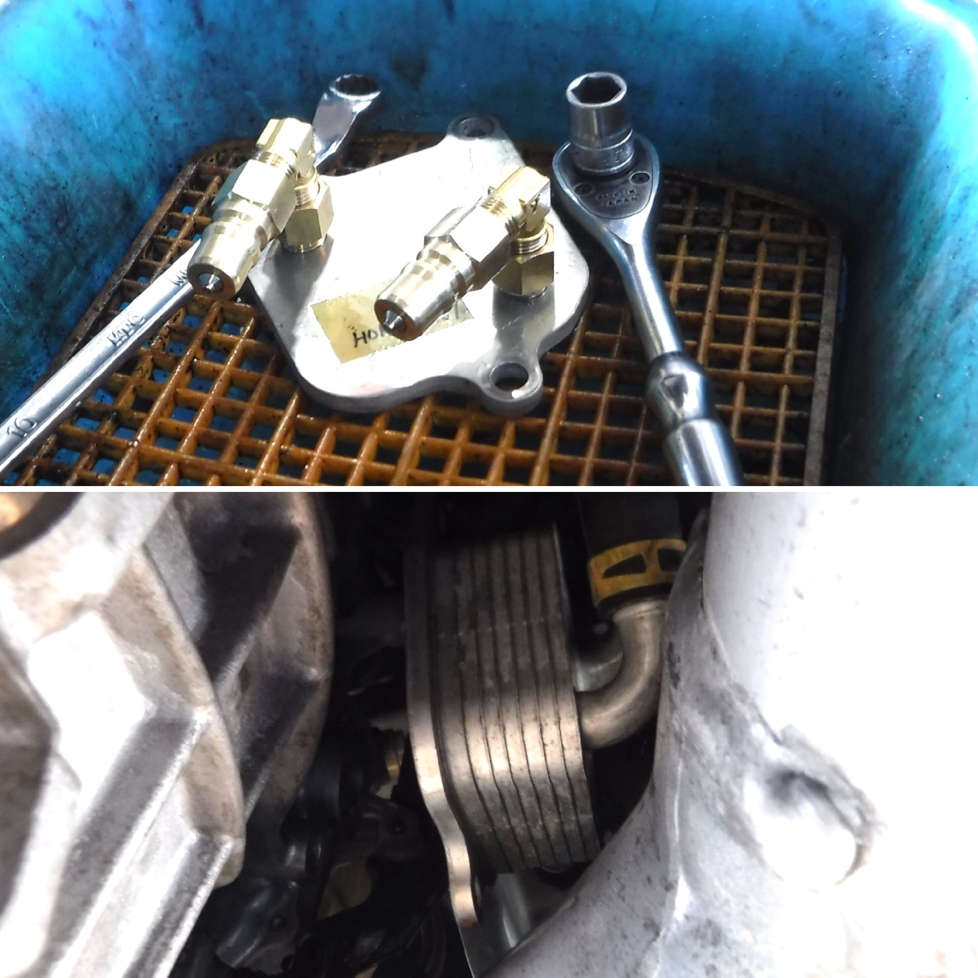 圧送交換は、専用アタッチメントを使ってオイルクーラー経由での作業です!