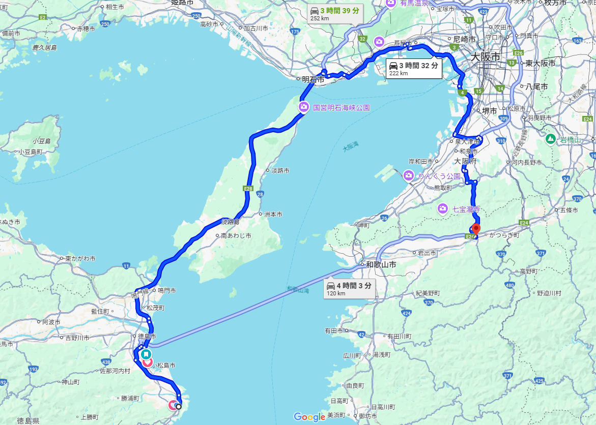 ご来店は朝9時、後ほどこちらで地図などを調べたところ、フェリーを使わずですと休憩込みで片道約4時間ってところ Σ(・ω・ノ)ノ!