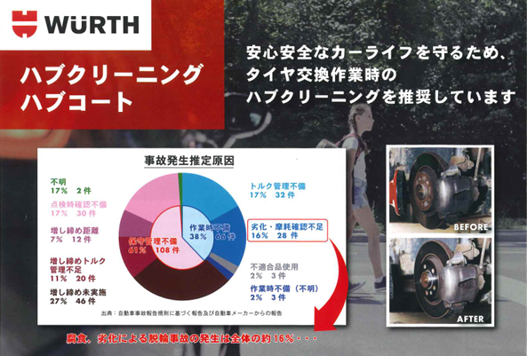 当社では、そうした事故を未然に防ぐための安全対策としてハブクリーニングを推奨しています(^o^)丿