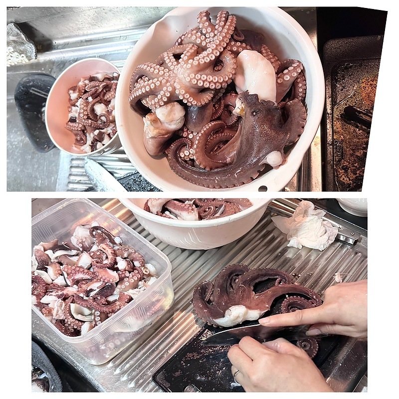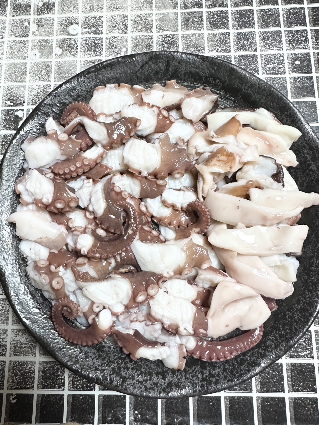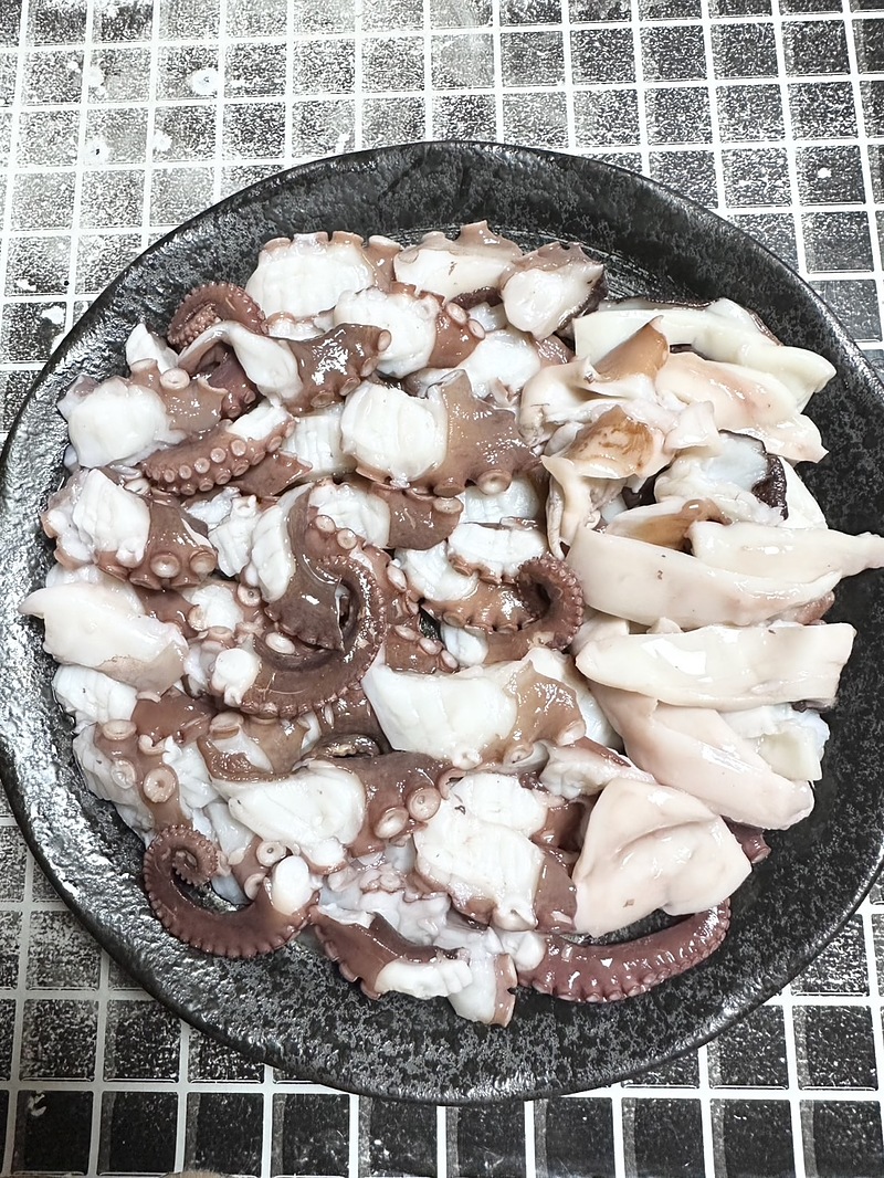 嫁ちゃんがタコの下処理をしてサッと茹でて、カットしているところでした(*^_^*)