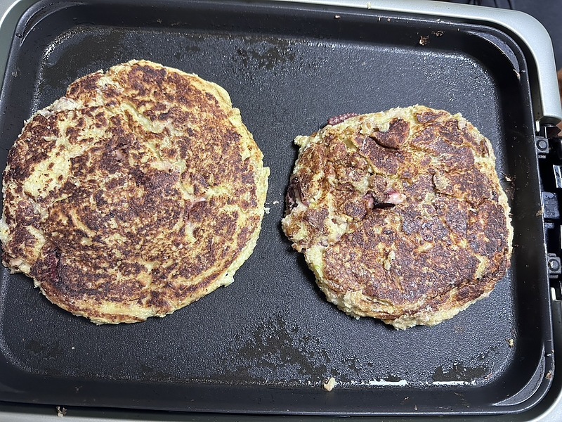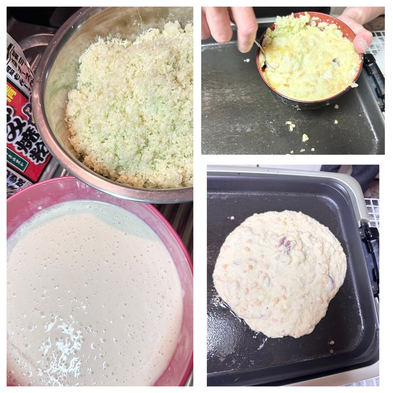 嫁ちゃんが生地の用意をして、プレートに流し入れてから