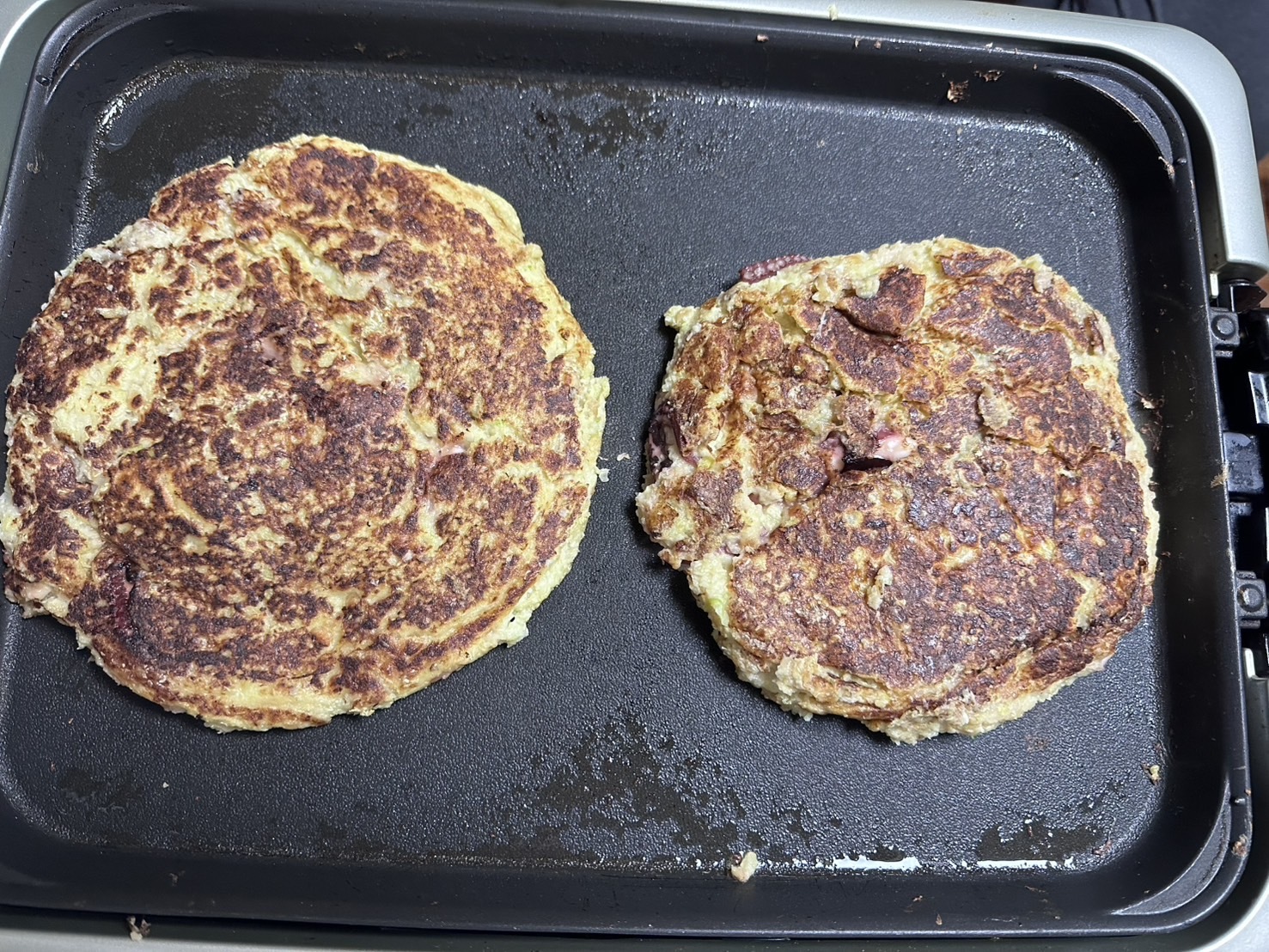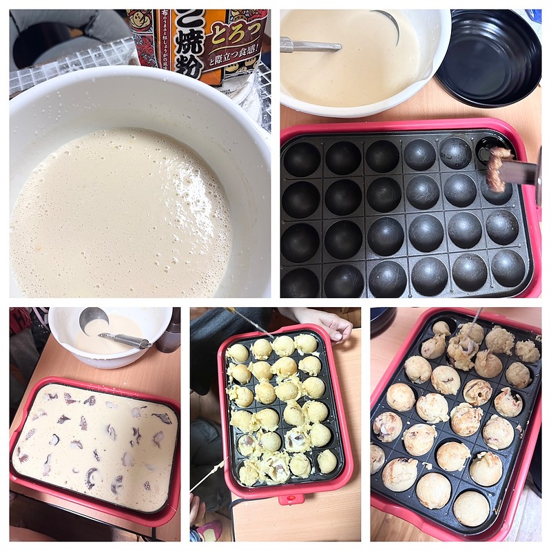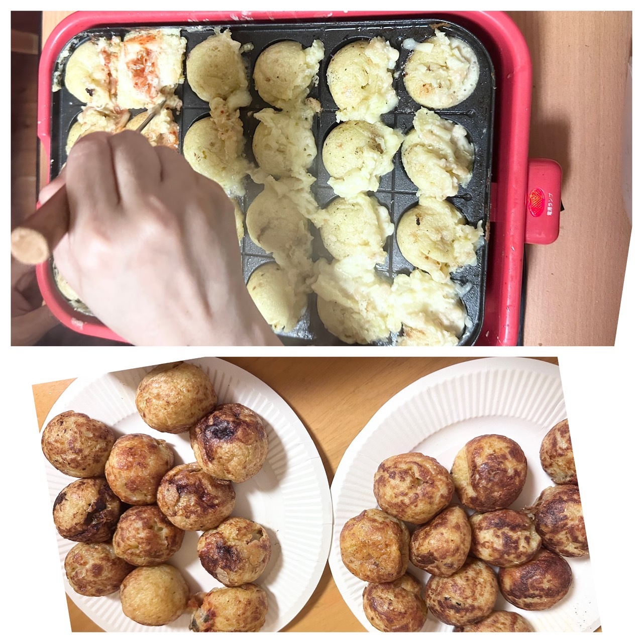 たこ焼き用に用意していたタコがなくなった後は、チーズやキムチを入れて焼きました(^o^)丿