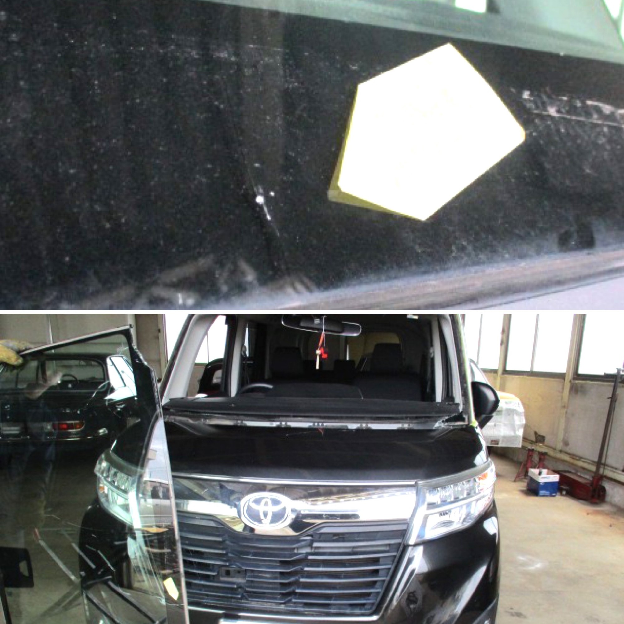 前述の通り、こちらのルーミーは安全装置付きの車両だったため、フロントガラス交換後にはエーミング作業(先進運転支援装置の補正)が必要でした。