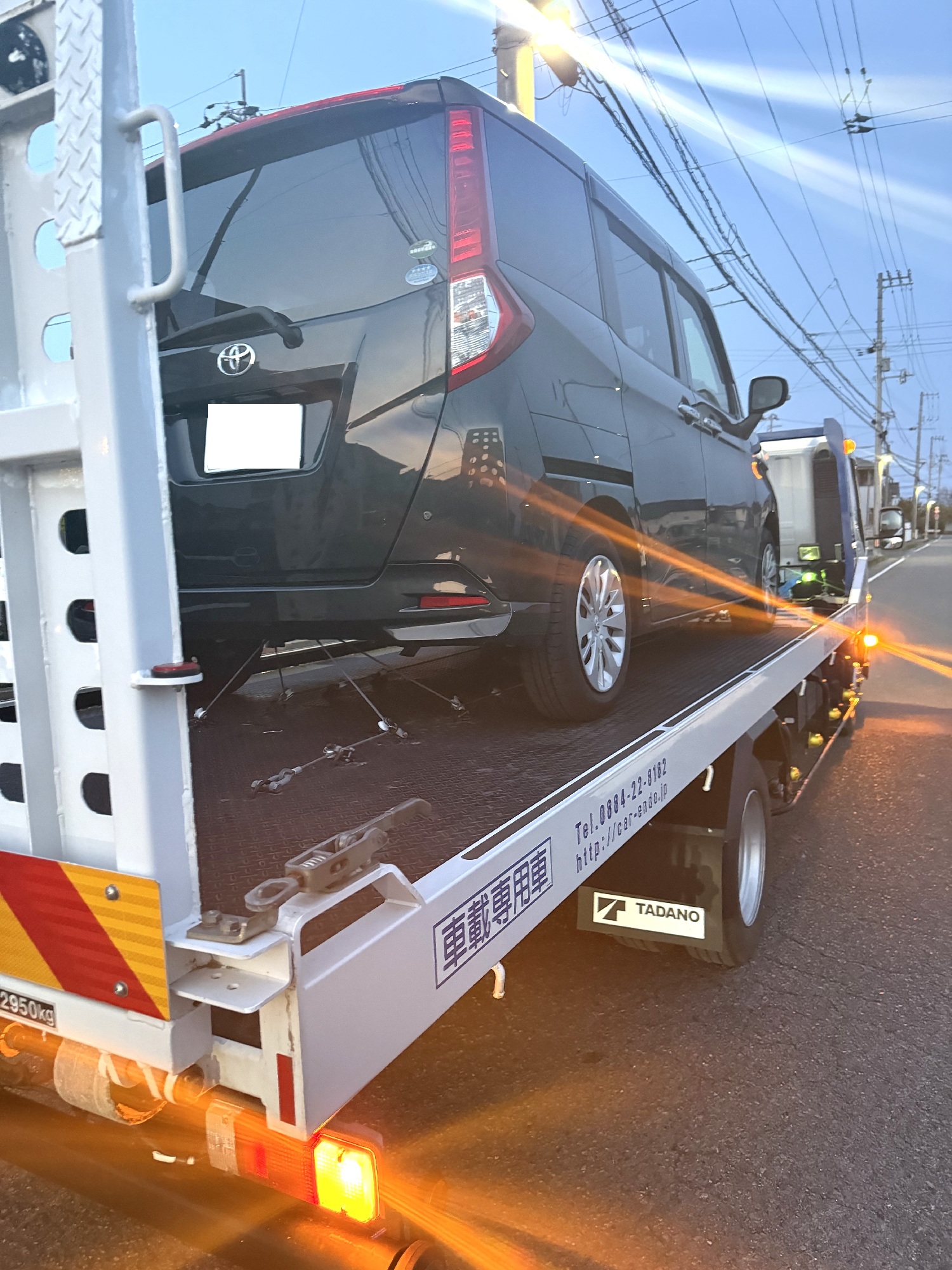 お電話をいただき、運転席前に飛び石の被害があるとのことで、任意保険のロードサービスを利用し、レッカー搬送となりました。