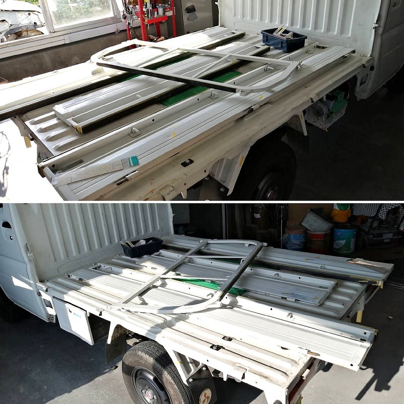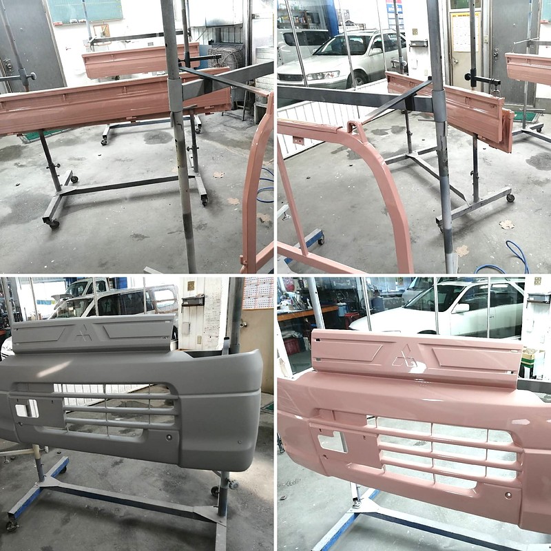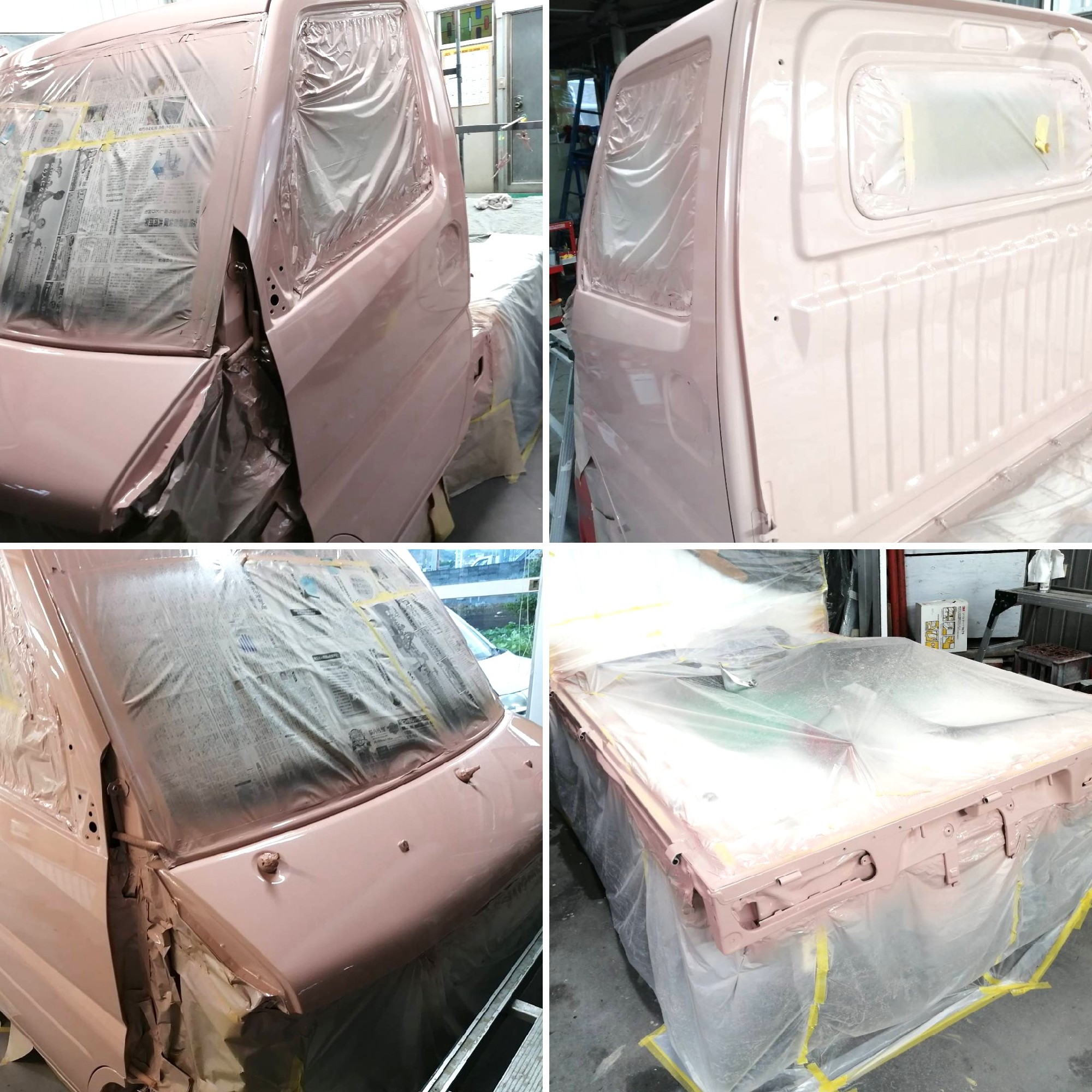 その期待に応えるべく、 後ろのゲートやトラック、前面のバンパー、パネルを解体し、 ボディ本体はもちろん、部品ごとに丁寧に分けて個別塗装を施しました(^o^)丿