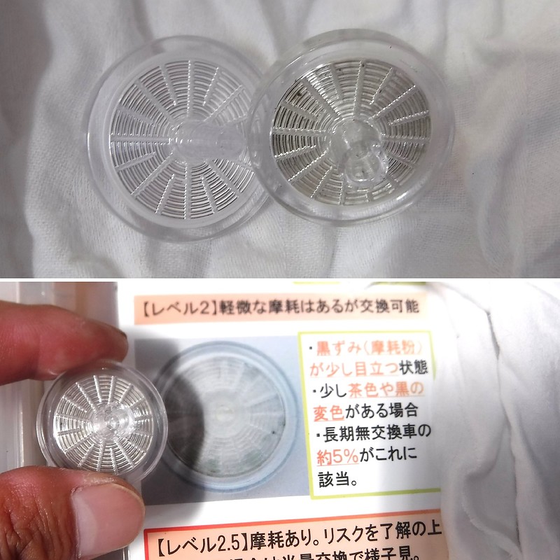 走行距離相応の摩耗粉は見られましたが、作業に支障のないレベルと判断し、圧送交換作業を進めました。