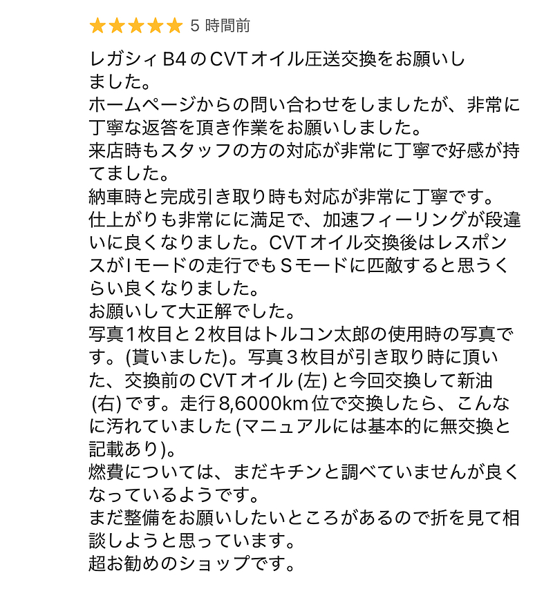 さらに、引き取り時にお渡ししたCVTFの比較写真にもご満足いただきました。