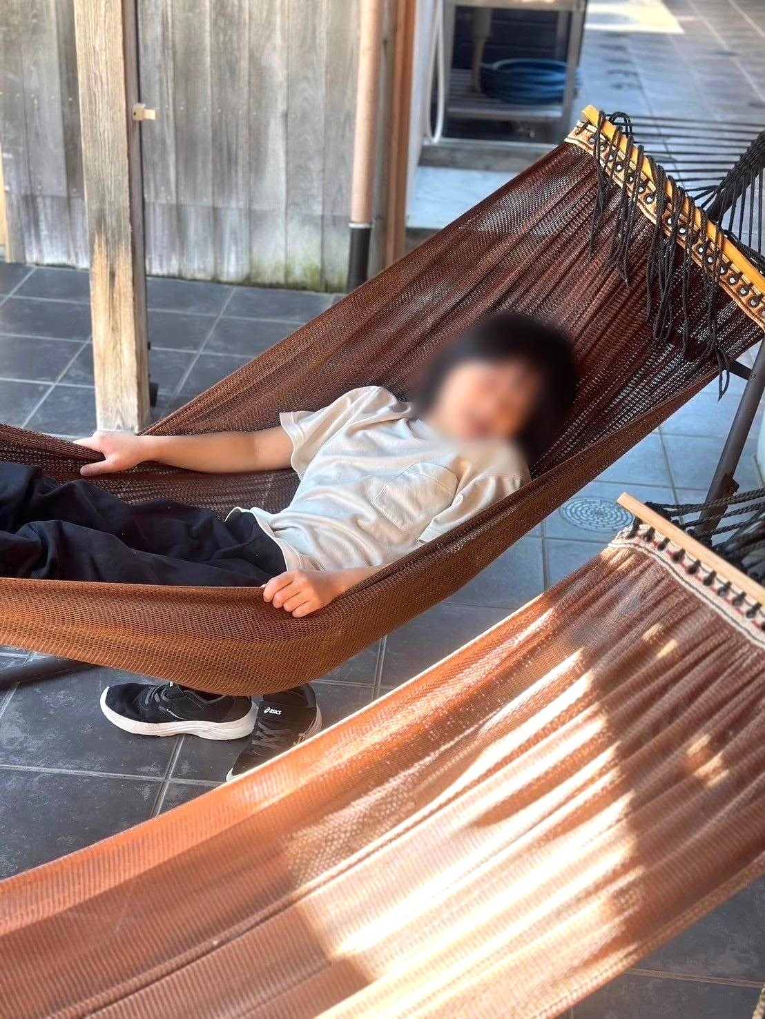 実はこのハンモック、昨年宿泊先で気に入って衝動買いしたのに、ずっと眠らせていたアイテム。