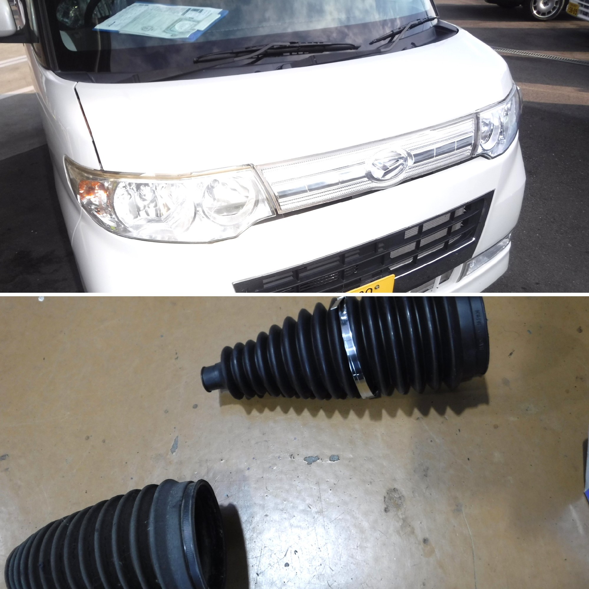 車検時に破れを確認。走行中の安全性と車検適合のため新品に交換。