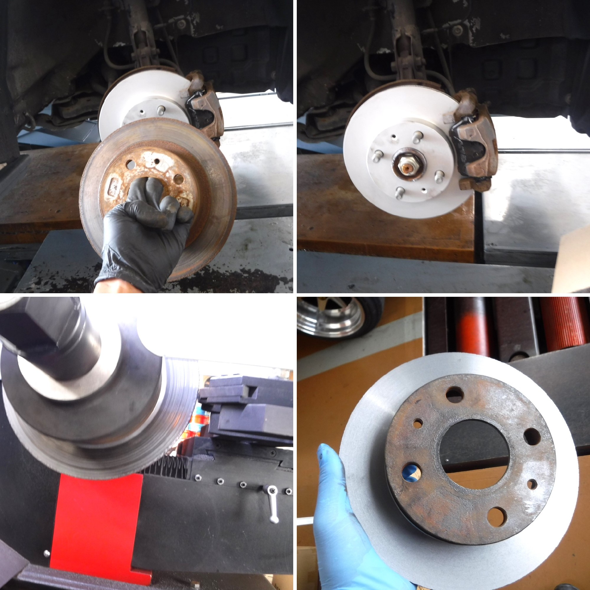 ■ ブレーキローター研磨作業 段付き摩耗が見られたものの、基準値内だったため研磨にて対応。