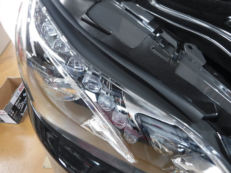 ようやく保険会社との調整が完了し、当社にて新品ヘッドライトの交換および初期設定を実施。