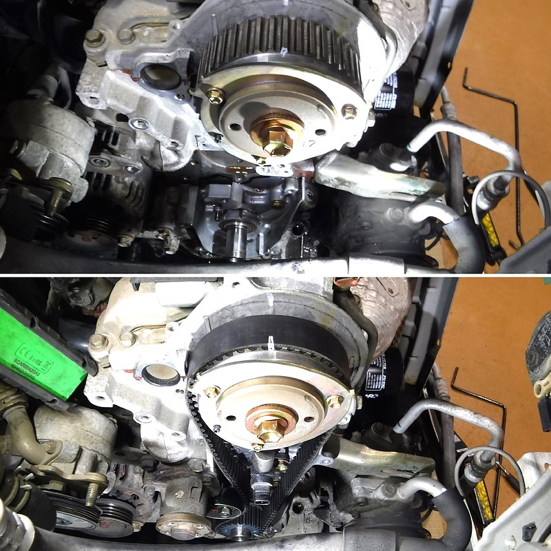 ウォーターポンプ交換にあわせてタイミングベルト一式も交換し、オイル漏れの修理やブレーキまわりのリフレッシュも含め、しっかりと対応させていただきました。