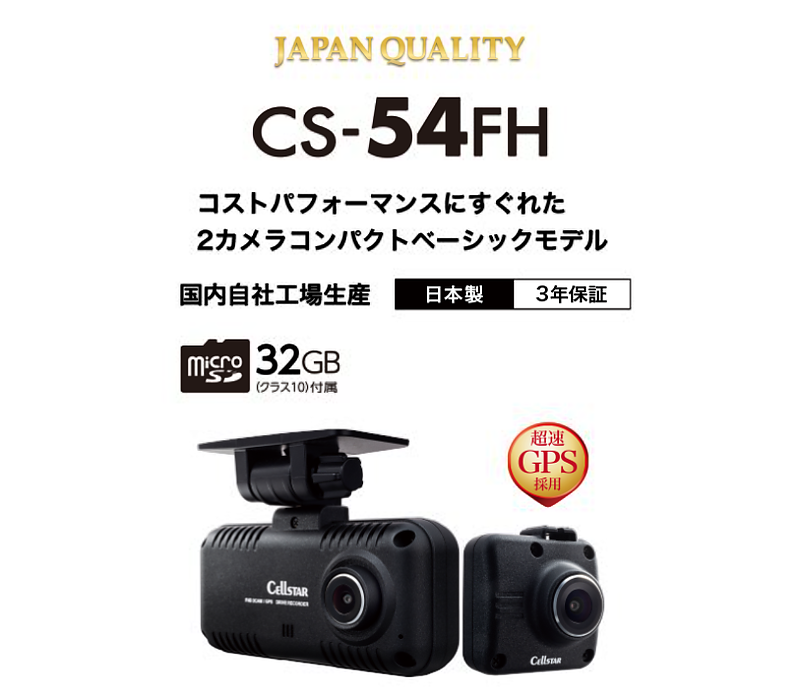 さらに、安心の国内自社生産・日本製3年保証付きドライブレコーダー「CS-54H」もご用意しております。