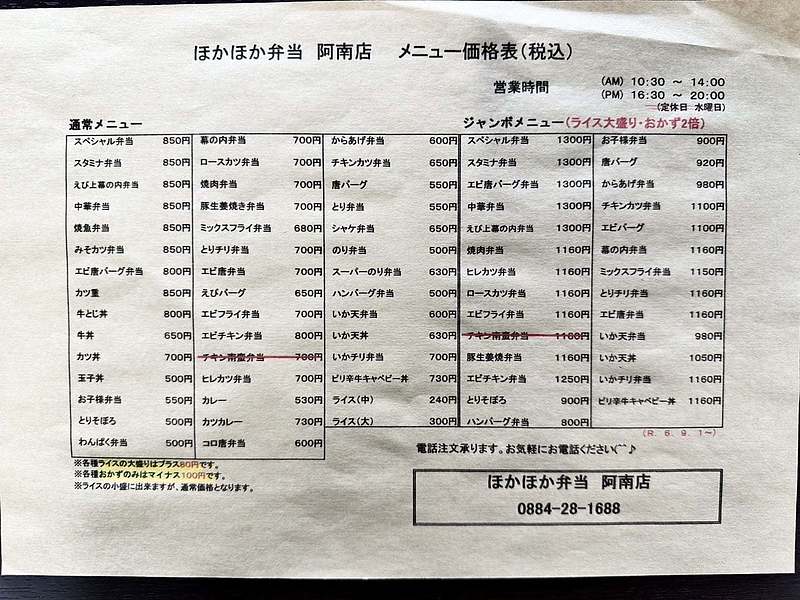 「ほかほか弁当 阿南店」は配達もしているので、当社の社長や奥さんもよく注文してくれています。