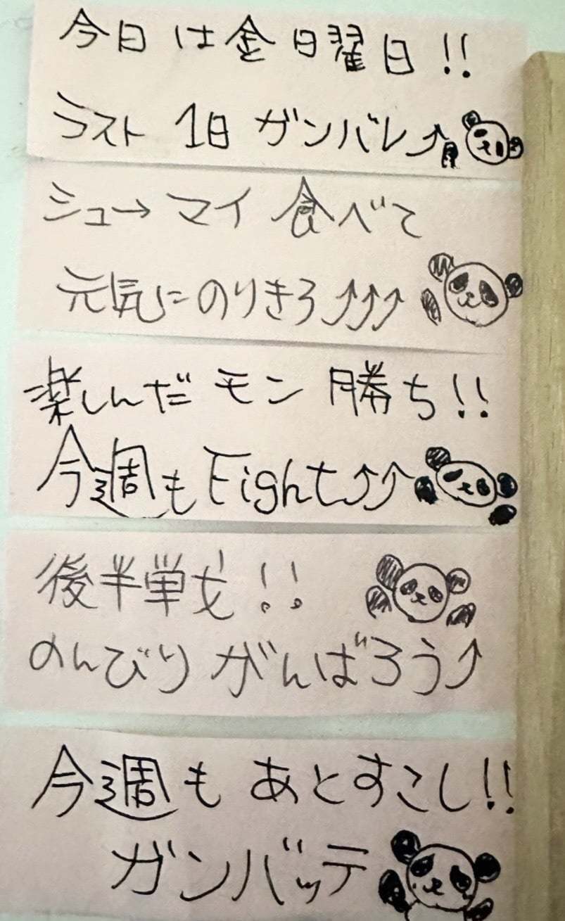 そして実は…いただいた一言メッセージは壁に貼って、しれ〜っと集めているのは内緒です(笑)