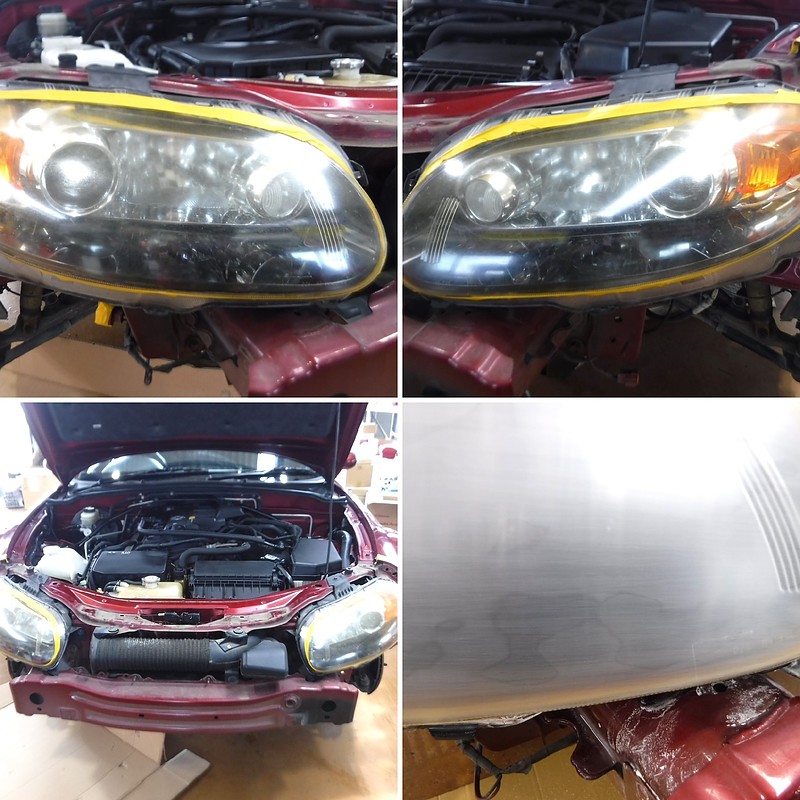 もちろん関連ホースも同時に交換し、Fバンパー脱着ついでにヘッドライトコーティングも施工しました。