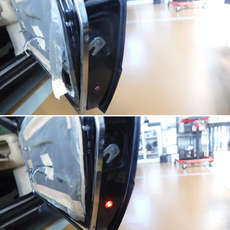 助手席ドアを開けた際に片側のみランプが点灯しない症状を確認。