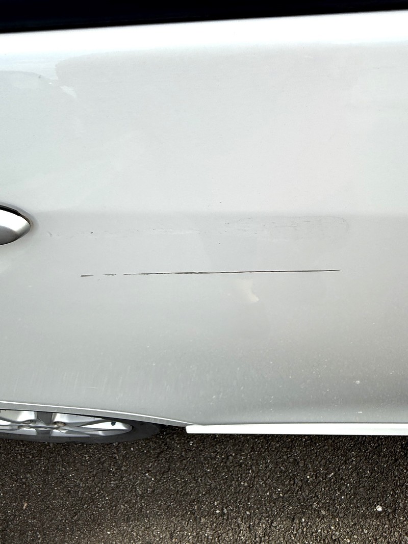 塗装面へのダメージは軽微で、磨きで十分対応可能な範囲。