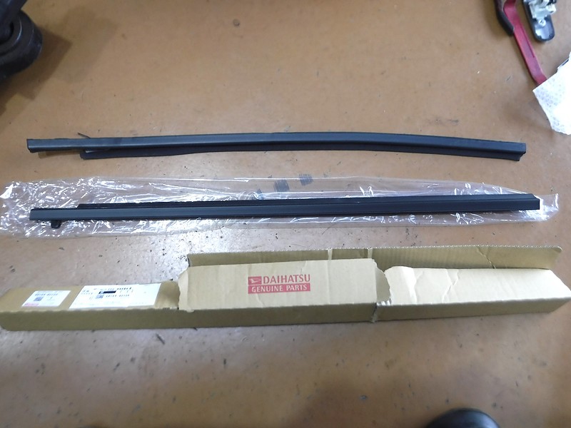 あわせて、この年式のムーヴでよく見られる“ウェザーストリップのゴム切れ”も確認されたため、事故とは別作業として新品交換を実施しました(^^)