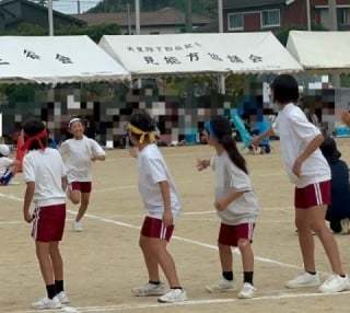 最後は毎年大盛り上がりの“地域リレー”。娘は白組の4年生代表として出場。
