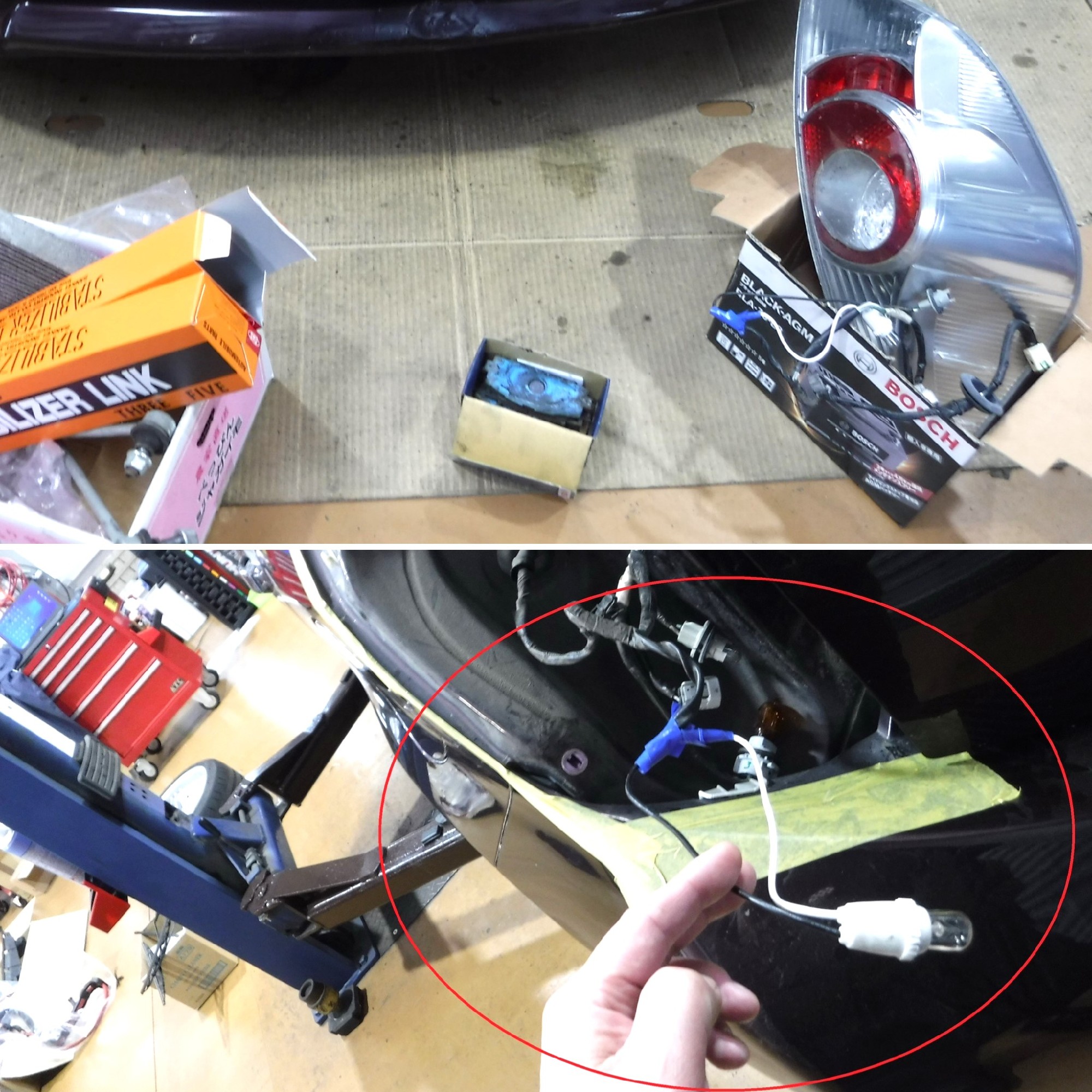 テールランプが点かず、お客様がご自身で配線を加工してしまい元に戻らない状態に…。