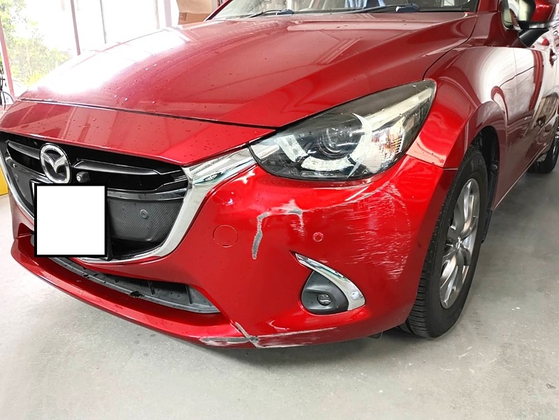 左前を損傷したデミオの修理事例です。