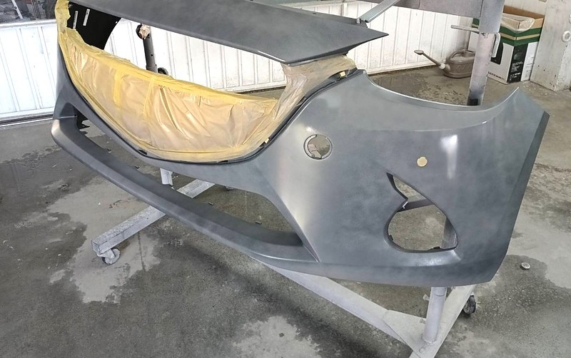 フロントバンパーは色なしなので、再塗装が必要でした。