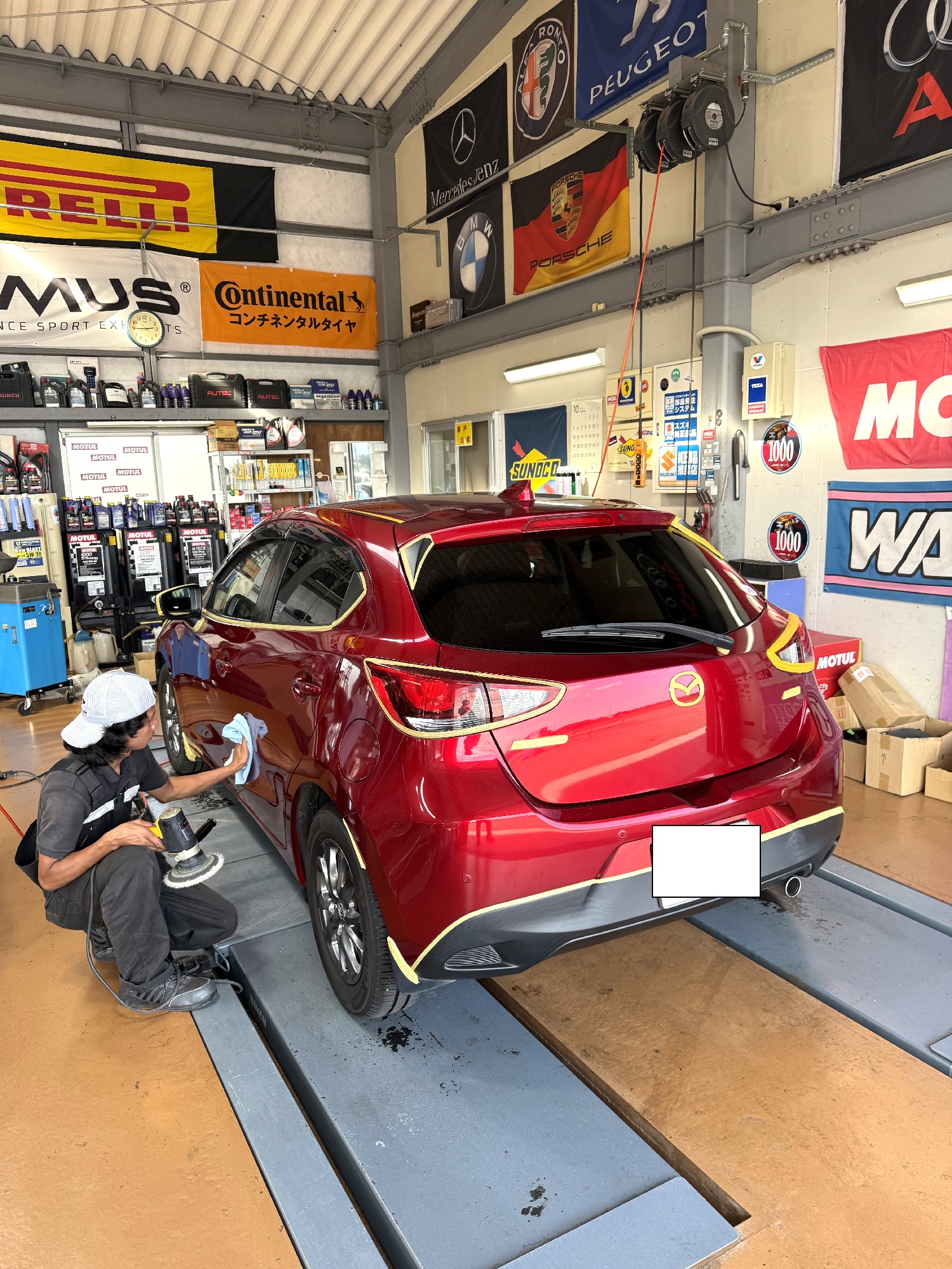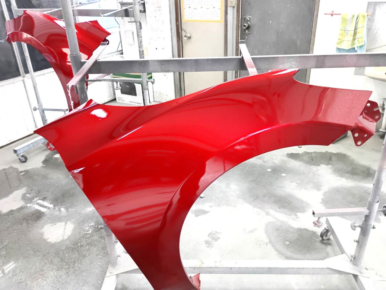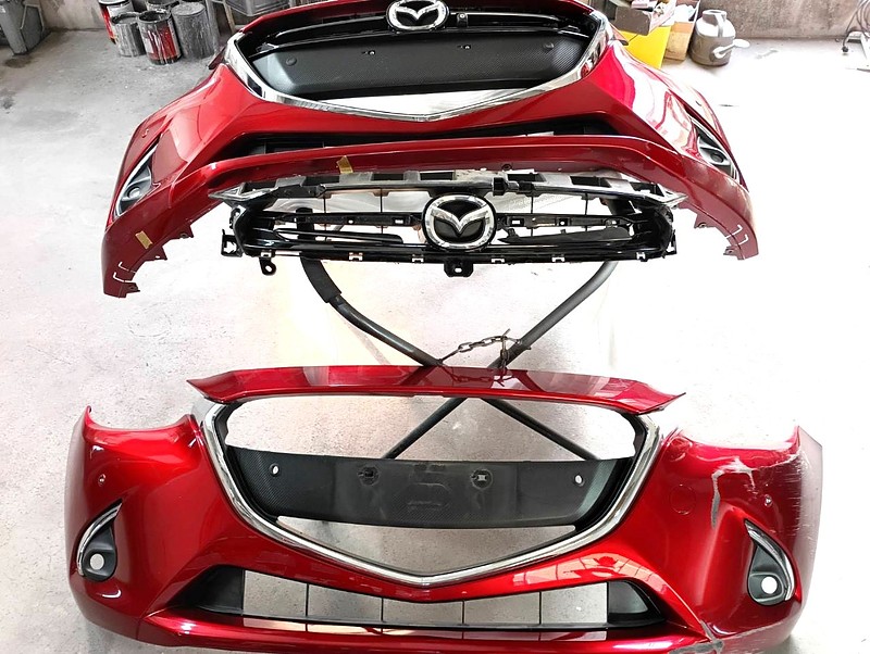 ソウルレッドの塗装は非常に繊細で、まずバンパーを塗装したところフェンダーとの色の差が明確に。。。