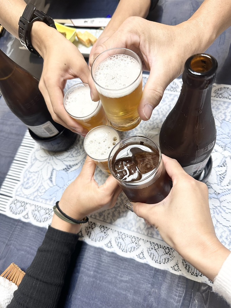 飲まないのは私だけなので、隣でお茶を飲みながら乾杯しました(笑)(^▽^)ノ