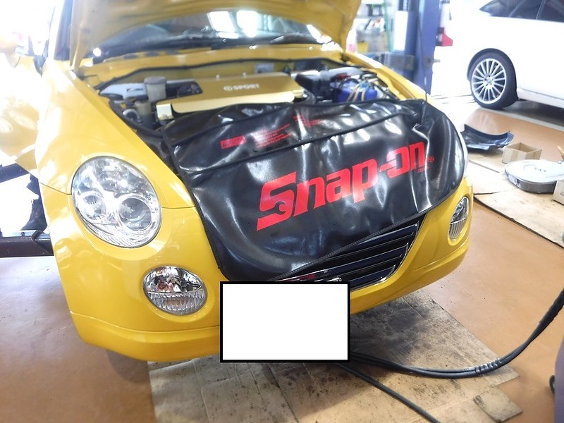 今回は、鮮やかなイエローのダイハツ コペンでの圧送交換一式作業。
