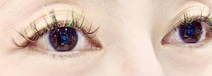 自然な雰囲気を保ちながらも、光の当たり方で表情が変わるグリーンのマツエクはとても新しい印象で、とても気に入りました。