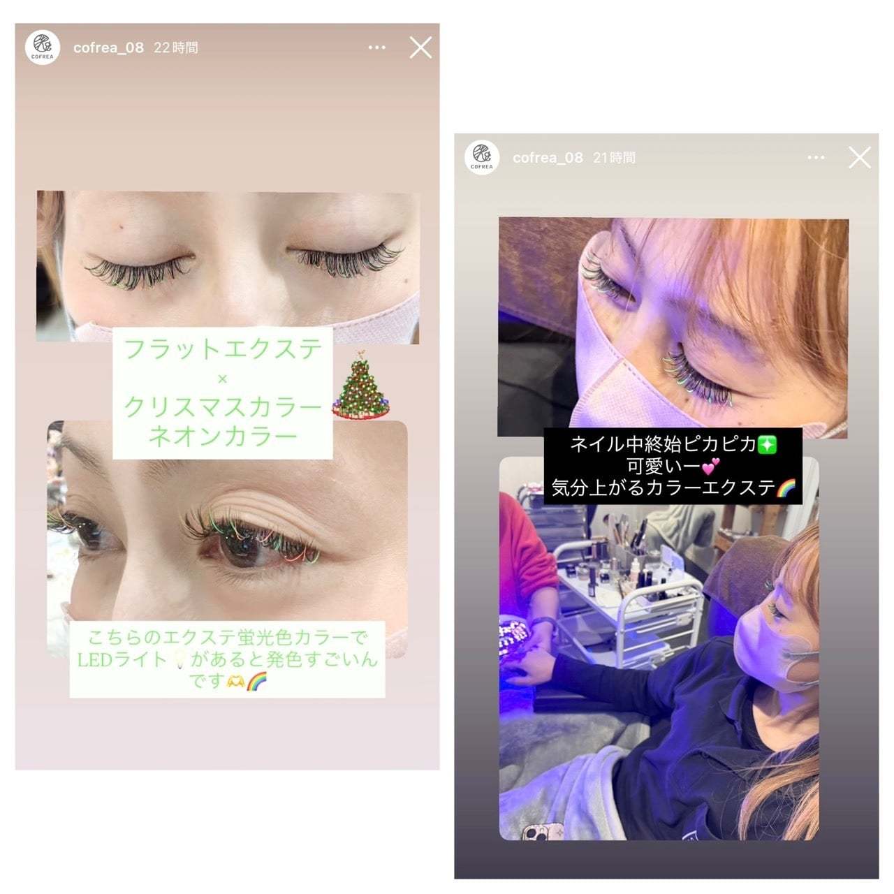 さらに今回は、仕上がったクリスマスネイルと蛍光マツエクをCOFREAのInstagramにも掲載していただき、とても嬉しく感じました。