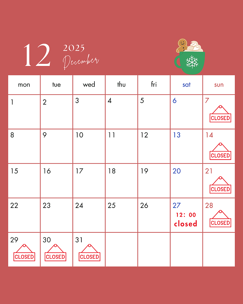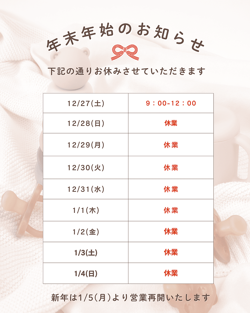 さらに重要なお知らせとして、2026年の営業開始は1月5日(月)9時半~となります。
