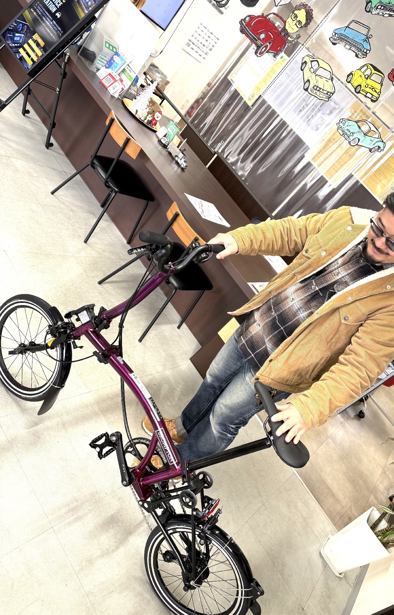 付き添いで訪れた際にブロンプトンの話題となり、折り畳みや試乗を繰り返すうちにご購入者様の興味が一気に高まりました。