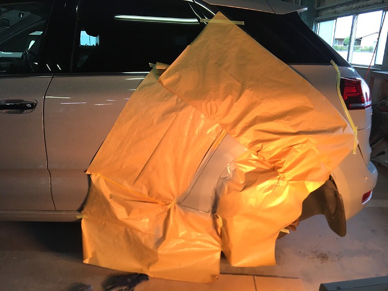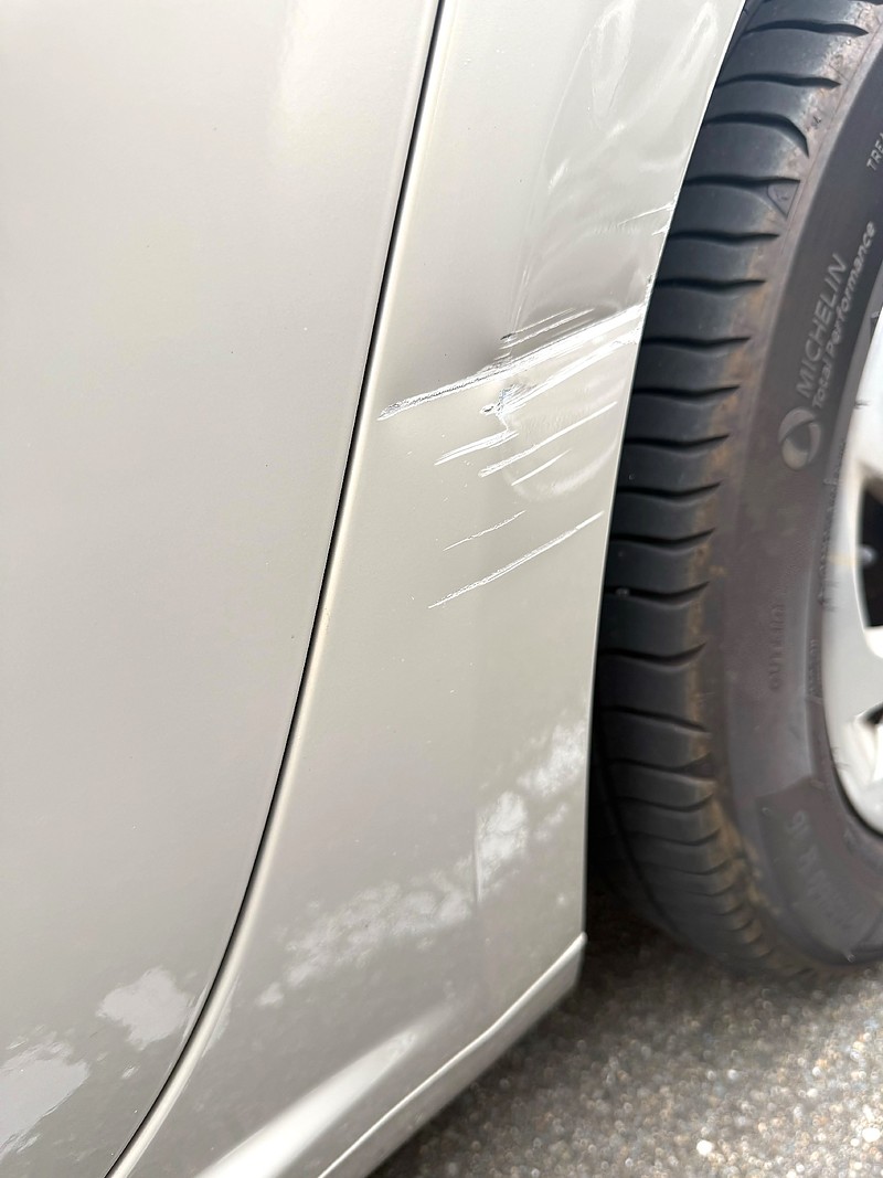 左リアドアからクォーターパネル、さらに下回りの樹脂パーツにかけて、駐車場などで擦ってしまったことによる損傷が確認できる状態でした。