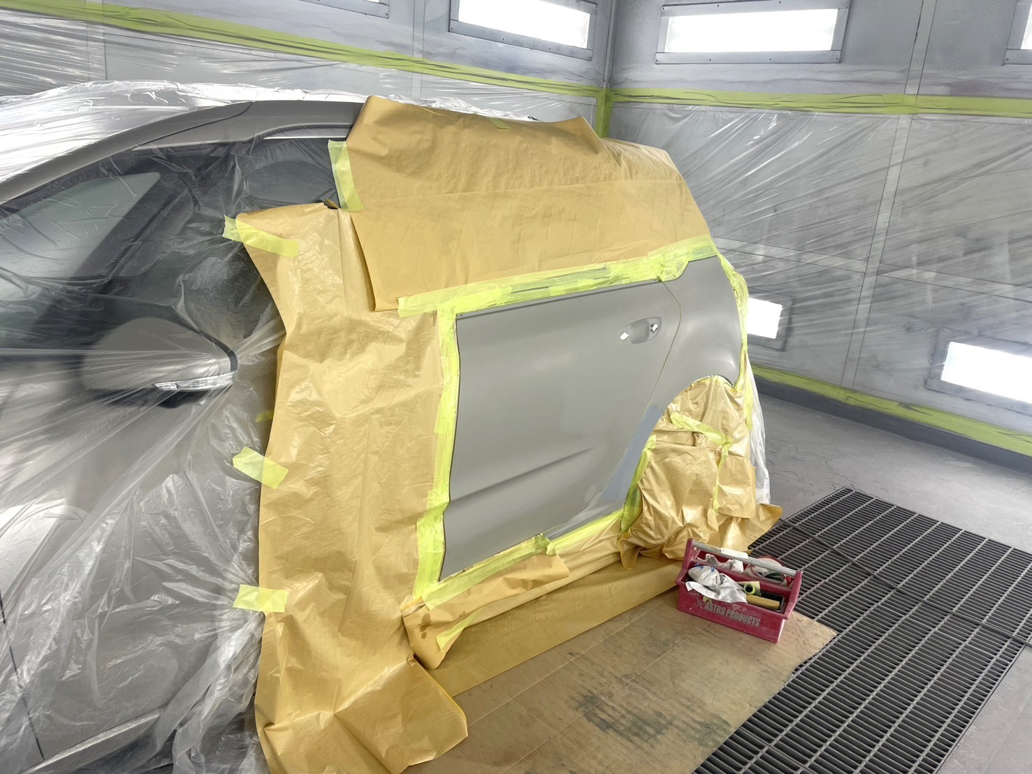 塗装後は、周囲パネルとの色味や艶感を細かくチェックしながら最終仕上げを実施。
