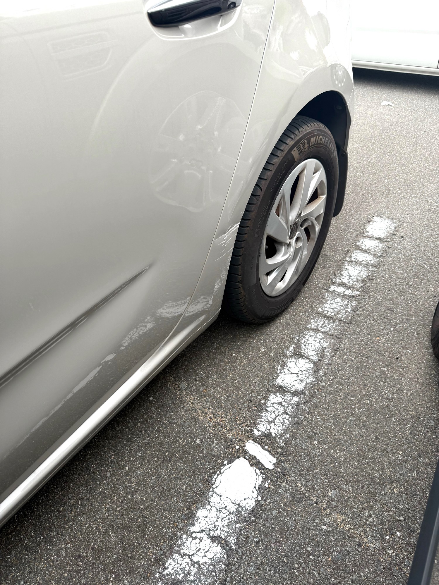 左リアドアからクォーターパネル、さらに下回りの樹脂パーツにかけて、駐車場などで擦ってしまったことによる損傷が確認できる状態でした。