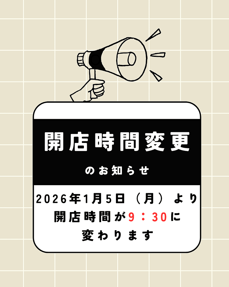 また、2026年1月5日より営業時間を9時30分開始へ変更いたします。