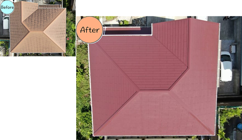 見積もりをお願いすると、その日のうちに来てくださり、迅速な対応に驚きました。施工前の状態をドローンの画像で見せてくださり、丁寧に説明もしていただいたので安心してお任せすることができました。予想以上の仕上がりに大変満足しています。煌工房さんにおねがいして良かったです。ありがとうございました。