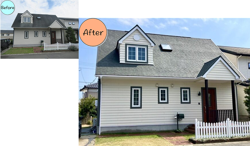 屋根の汚れが気になり始めたころ、主に運転中ですが外壁塗装をしている現場の仕上がりの観察をするようになりました。色合いも含めて綺麗!と思えたのが貴社でしたのでほか相見積は行っておりません。私はこだわりが強い方ですので、ネットで調べてある程度色も決めてお願いしましたが、施工経験からのアドバイスをいただき、大変助かりました。立派な足場で、塗装職人さんたちは暑い中、隅々まで丁寧に作業してくださいました。特にラップサイディングのコーキング除去と充填は想像を絶する苦労だったと思います。皆様のおかげで仕上がりは新築同様といっても過言ではないくらい気に入っておりますので、ご安心ください。気になる点はございません。皆様本当にありがとうざいました!貴社の益々のご発展をお祈り申し上げます。