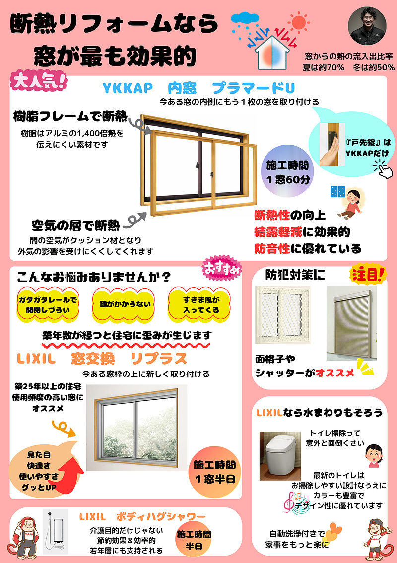 窓の断熱リフォームならMASAにお任せください(’◇’)ゞ