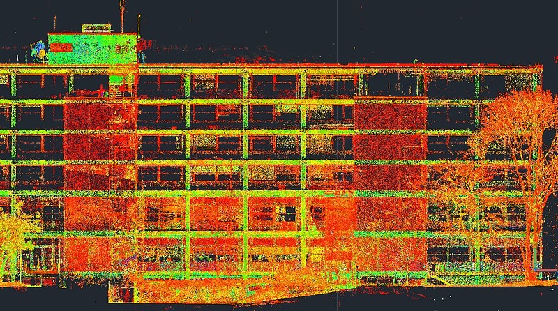 講義や研究活動の合間を縫いながら計測を行い、地下の機械室等を含むの建物全体を点群データとして取得しました。