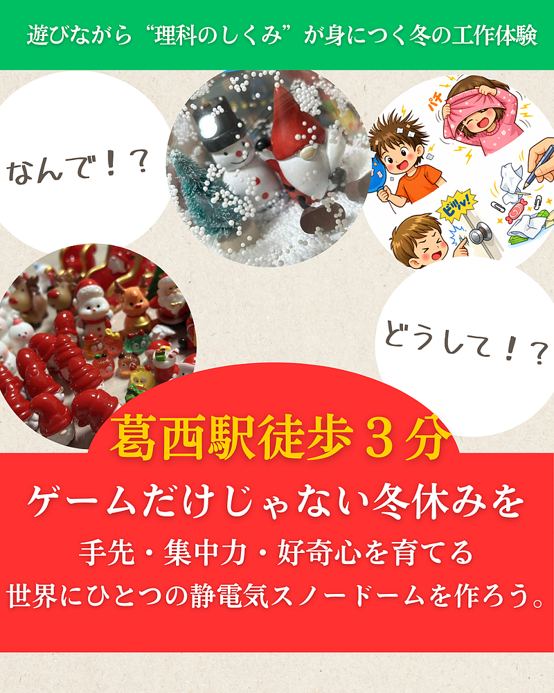 冬休み期間中の開催のため葛西近隣だけでなく、少し離れた地域からの参加も可能です。