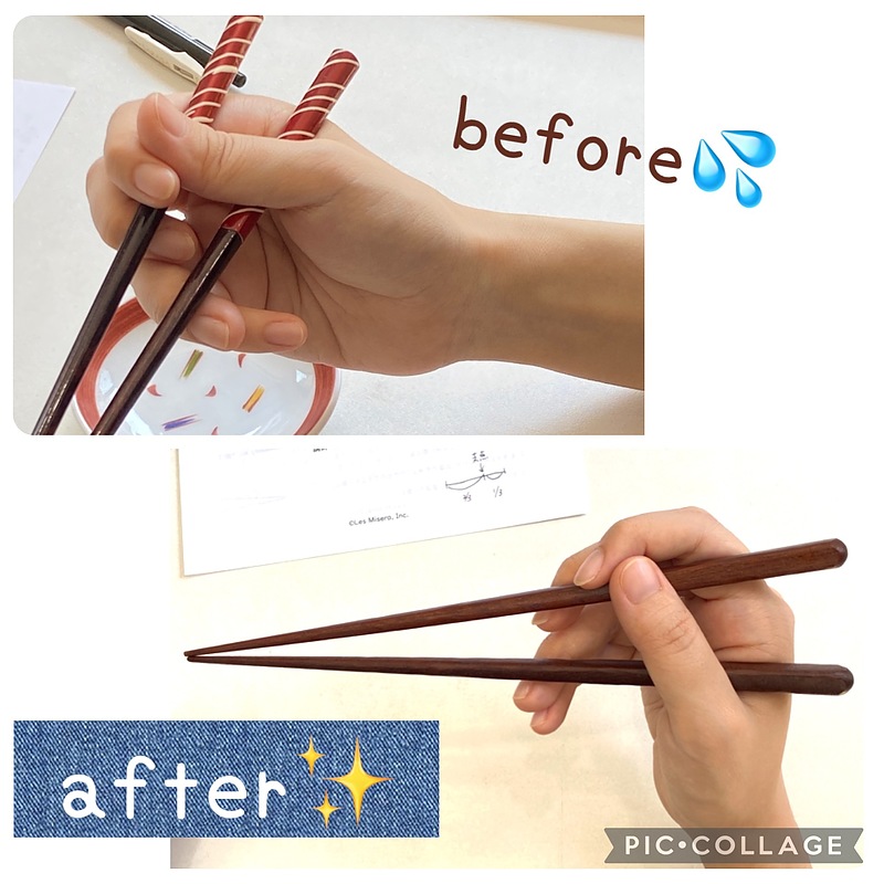 自分の箸の持ち方のどこが違っているのか理解できず直すことができなかったため、客観的なご指摘をいただき大変助かりました。