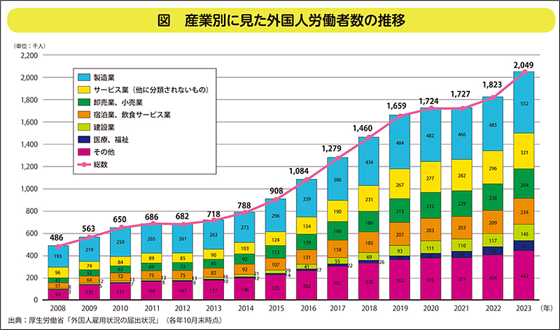労働施策総合推進法に基づき、外国人労働者がその能力を適切に発揮できるよう、外国人※を雇用する事業主には、外国人の雇入れ、離職の際に、その氏名、在留資格などについて確認し、ハローワークへ届け出ることが義務づけられています。