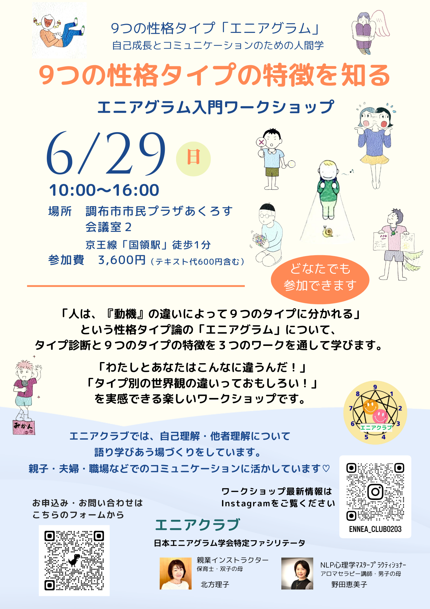 エニアグラムがはじめての方に向けてのワークショップを開催します。