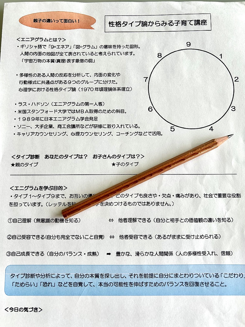 私もこっそりタイプ診断をやって、親子関係・対人関係でエニアグラムを楽しめるように使ってみたいと思います。