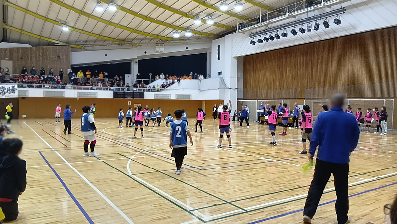 コートの中心には、全力でボールを追う子どもたちがいます。